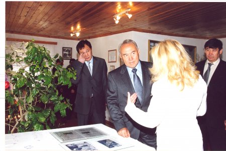 В год празднования 100- летия со дня рождения великого писателя, посетил наш музей и президент Казахстана Н.Назарбаев. На осмотр музея президенту по регламенту было отведено пять минут, но наши экспозиции так заинтересовали главу государства, что он нарушил регламент и задержался в музее на целых пятнадцать минут. В память о своем визите президент подарил нашему музею миниавтобус «Газель» и оставил запись в книге посетителей.