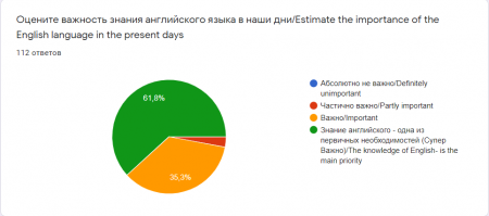 The next questions in survey asked respondents to rate the importance of English language at the present days. The majority of respondents (over 65%) answered – “The knowledge of English – is the main priority”. The other part of respondents (approximately 35%) state that the English language is important nowadays. Overall, all people understand, that the English language is one of the most important aspect of development of educational system of our country.