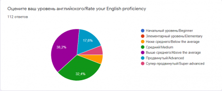 According to the conducted survey, the majority of respondents marked their degree of proficiency in English as higher than average (38.2 %), with a pretty small backlog comes the second most popular part of respondents which states, that their English is at the medium degree (32.4 %). The minority of respondents said that they estimate their degree in English language as “lower than average” (5.9 %)and almost the same percentage of students state that their degree is “Super-advanced”(5.9 %). What stands out from this data is that the NIS students and teachers are not experiencing any significant problems while speaking and using English language, however, it doesn’t mean that their English skills doesn’t require any improvements, they still have a lot of work to do, because there are only 75% percent of people, who know English language at the average level or above, while the total percentage of good users of English should be at least 85% in order to successfully integrate English language in the educating system of NIS Aktobe and the entire Kazakhstan, only so, the average results of IELTS exam will experience a significant grow among the students.